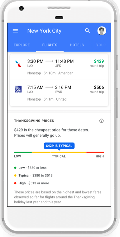 In this example, a user may wonder “In relation to what is $429 is cheap”. Cheap can be subjective. Google answers this by providing the lowest and highest values.